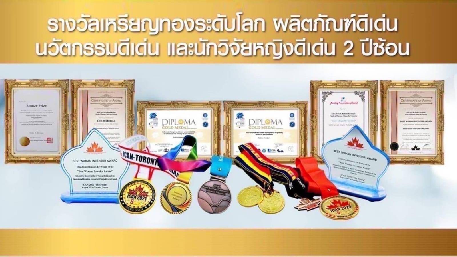 อาจารย์และนักวิจัย คณะเภสัชศาสตร์ มหาวิทยาลัยเชียงใหม่ สร้างผลงาน คว้า 2 เหรียญทอง จากการเข้าประกวดผลิตภัณฑ์ที่มีนวัตกรรมดีเด่น จากงาน EUROEVENT 2020 ทวีปยุโรป เมื่อเดือนพฤษภาคมที่ผ่านมา ซึ่งผลงานจากนวัตกรรมเหรียญทองแรก สามารถทำให้ขมิ้นชันละลายน้ำได้มากที่สุด ในโลกกว่า 40,000 เท่า และเมื่อขมิ้นชันละลายน้ำได้มาก ก็สามารถดูดซึมเข้าสู่กระแสเลือดได้มาก มีผลทำให้รักษาอาการจากโรคต่างๆได้อย่างมีประสิทธิภาพ